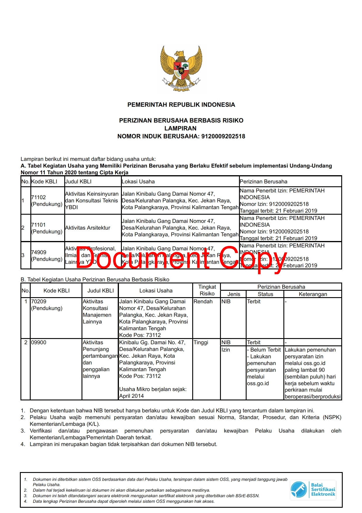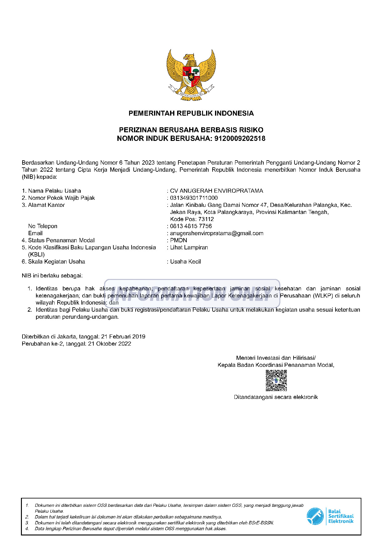 > Nomor Induk Berusaha (NIB) OSS